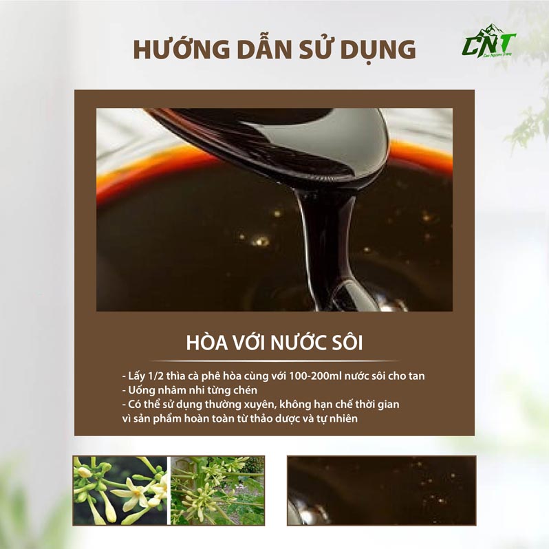 + Lấy 1/2 thìa cà phê hòa cùng với 100-200ml nước sôi cho tan