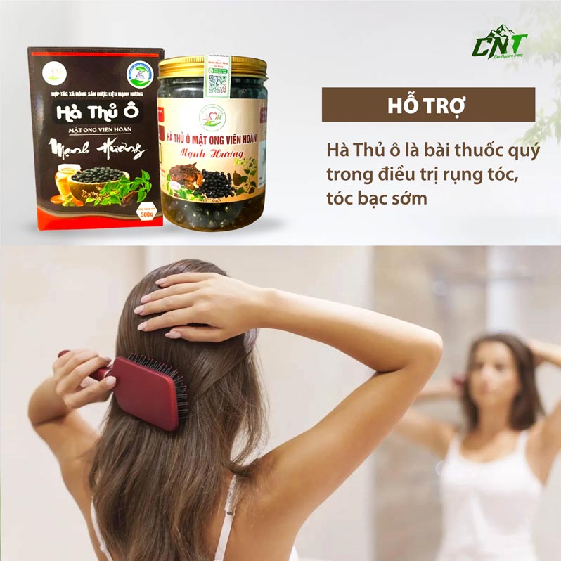 Sản phẩm là sự kết hợp của Hà Thủ ô, mè đen, nước đậu đen, mật ong nguyên chất